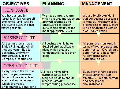 In larger companies this process may cascade over a number of levels - from the group into business areas, into individual companies, into departments, and finally into separate working teams or units - but essentially the process is the same between each level,